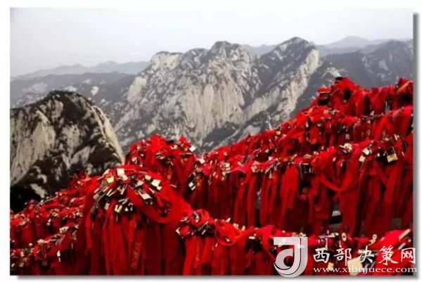 華山是一座愛情的殿堂,華山上的愛情故事悲烈、凄美而感人。我們?cè)?jīng)為世界上許許多多的愛情故事所感動(dòng)。其實(shí),發(fā)生在華山上的愛情故事一樣讓人的心情無法平靜。眾所周知的神話傳說《寶蓮燈》中,三圣母為了愛情,被二郎神巨石壓在華山頂上;弄玉為了愛情,逃離安逸的生活,與蕭史雙雙來到華山,琴瑟合鳴;漢臣王咸不畏艱險(xiǎn),到華山尋找賢妻南陽(yáng)公主,等等。這些愛情故事,感天動(dòng)地,流傳不衰,不知讓多少人為之贊嘆。也許是讓華山上的這些動(dòng)人的愛情故事所感染,不知從什么時(shí)候開始,在代表著堅(jiān)實(shí)聯(lián)結(jié)的一串串鐵鏈上,游人掛上了金光閃閃的鎖子,把矢志不渝的愛情鎖在華山上,祝愿自己的愛情如同華山一樣永遠(yuǎn)不會(huì)改變。華山,有許許多多這樣與愛情有關(guān)的物事。華山,不愧是一座愛情的殿堂。