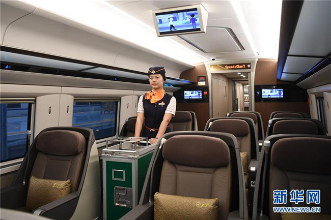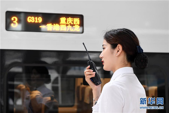 7月11日,乘務員在G319次列車上做發(fā)車前的準備工作。當日,重慶至香港直達高鐵正式開通,此次首發(fā)的G319次復興號列車運行速度350km/h,沿途經停遵義、貴陽東、桂林西、肇慶東、廣州南和深圳北站。列車由重慶西站至香港西九龍站全程運行需7小時37分鐘,全程票二等座票價為660元。目前內地與香港聯通的高鐵車站已增加到58個。新華社記者唐奕攝