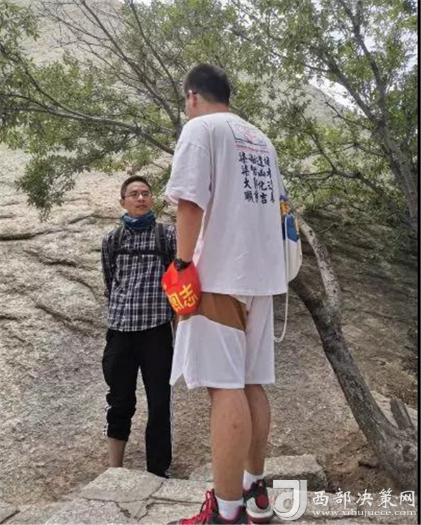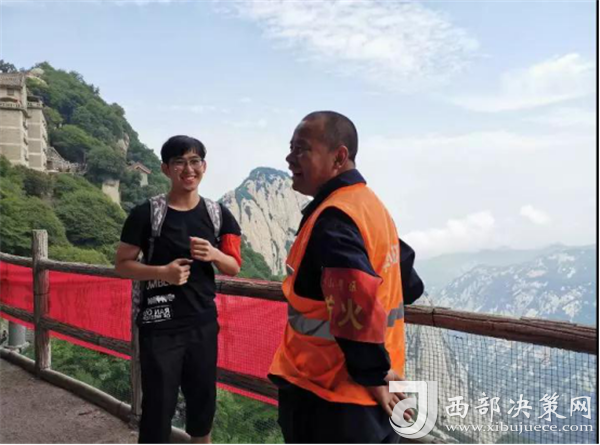志愿者在采訪游客:關于華山環(huán)境保護問題的意見