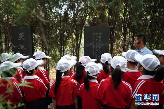 當(dāng)日,河北省邢臺(tái)市巨鹿縣育新小學(xué)組織學(xué)生前往位于該縣縣城的邢臺(tái)市愛(ài)國(guó)主義教育基地——愛(ài)華翰苑碑林,聽(tīng)講解員講解碑上鐫刻的熱愛(ài)祖國(guó)、熱愛(ài)家鄉(xiāng)等歷代名言警句,過(guò)一個(gè)有意義的暑假。 新華社記者 牟宇 攝