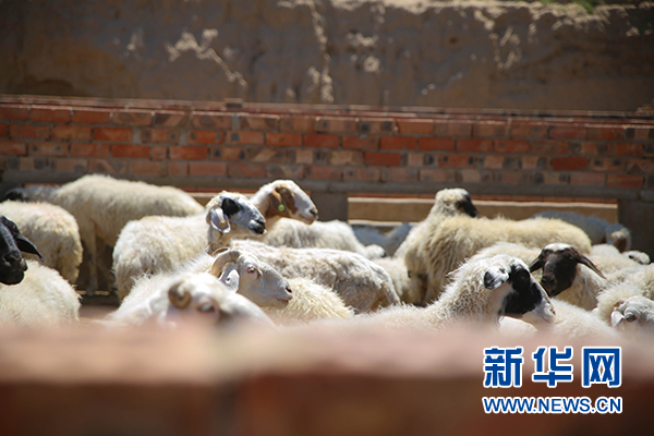 這是鹽池縣王樂井鄉(xiāng)劉相莊自然村,一戶村民家養(yǎng)殖的灘羊(7月4日拍攝)。 新華網(wǎng) 肖寒 攝