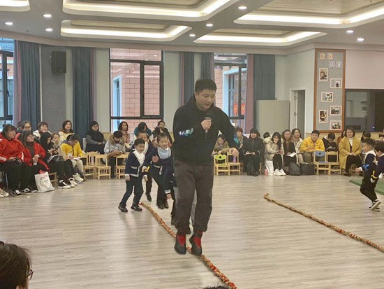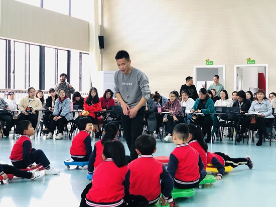 3月29日,浙江省建德市欽堂中心幼兒園教師鄭勇江在執(zhí)教大班健康活動公開課《趣味運動會》。鄭勇江供圖