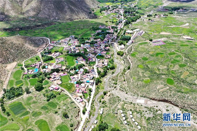 鳥瞰達東村景區(qū)(7月20日無人機拍攝)。西藏拉薩市柳梧鄉(xiāng)達東村是一個千年古村,也曾是一個貧困村。近年來,依托秀美的自然風光、深厚的歷史文化和淳樸的風土人情,當?shù)卣畬嵤┪幕糜萎a(chǎn)業(yè)精準扶貧,使達東村蛻變成為鄉(xiāng)村旅游勝地。新華社記者普布扎西攝
