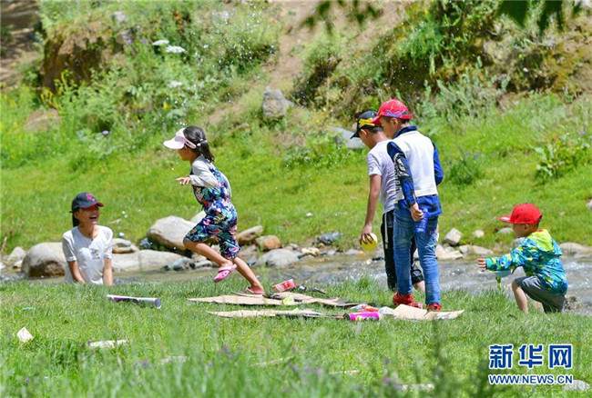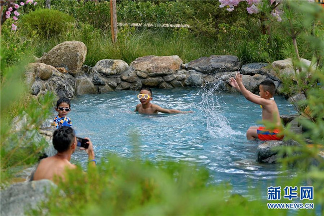 孩子們在達東村景區(qū)溫泉里嬉戲(7月20日攝)。西藏拉薩市柳梧鄉(xiāng)達東村是一個千年古村,也曾是一個貧困村。近年來,依托秀美的自然風光、深厚的歷史文化和淳樸的風土人情,當?shù)卣畬嵤┪幕糜萎a(chǎn)業(yè)精準扶貧,使達東村蛻變成為鄉(xiāng)村旅游勝地。新華社記者張汝鋒攝