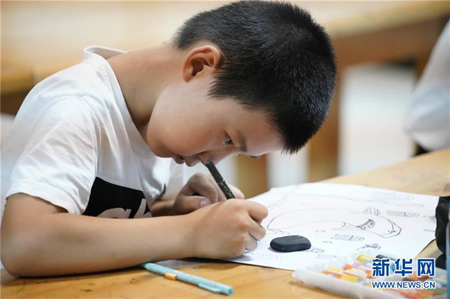 7月30日,學(xué)生在河北省涉縣青少年活動(dòng)中心畫畫。