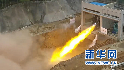 伴隨著發(fā)動機噴發(fā)出的烈焰熊熊燃燒,四周瞬間飛沙走石,持續(xù)20秒后,發(fā)動機平穩(wěn)關機。