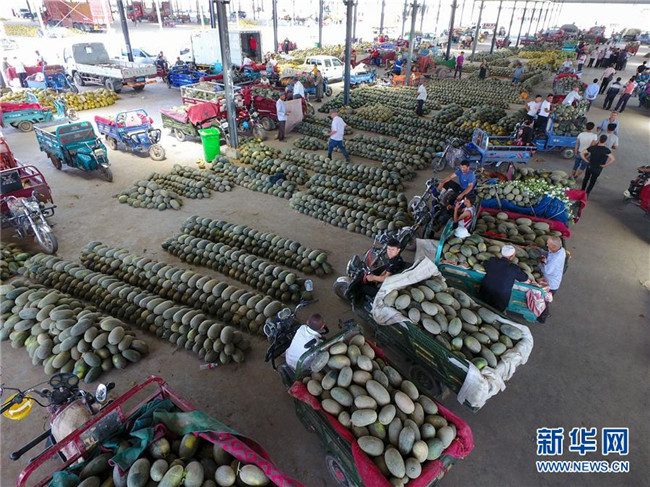 在新疆果品(伽師)批發(fā)交易市場(chǎng),客商在挑選伽師瓜(8月10日攝)。新華社記者 丁磊 攝