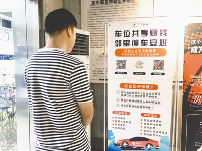 業(yè)主文飛有一個車位時常閑置,他想租出去,但常規(guī)租賃一般都以半年或一年為期,又怕想用時不好收回。2016年底,他看見鄰居的車位上掛了一個“私家車位APP”的牌子,嘗試著掃了一下二維碼,從此加入車位共享的行列。