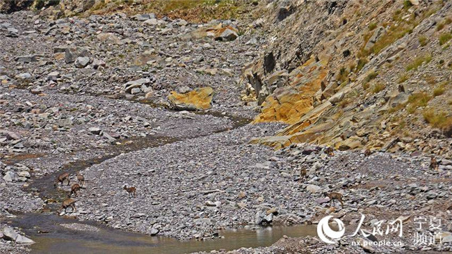 巖羊成群結(jié)隊到山溝喝水。吳隆重攝
