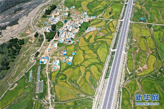 初秋,西藏拉(薩)林(芝)公路沿線的河流、村落、農(nóng)田等構成一幅幅美麗畫卷。 新華社記者 普布扎西 攝