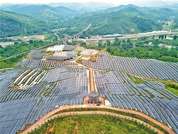 航拍商州區(qū)龍山光伏電站(6月30日)。該電站2018年9月建成,10月全部并網(wǎng)發(fā)電,年發(fā)電量3550萬(wàn)度。龍山光伏電站的建成,可帶動(dòng)全區(qū)1.8萬(wàn)戶貧困戶戶均年增收3000元左右,成為新能源示范區(qū)和脫貧產(chǎn)業(yè)基地。(記者 田若楠攝)