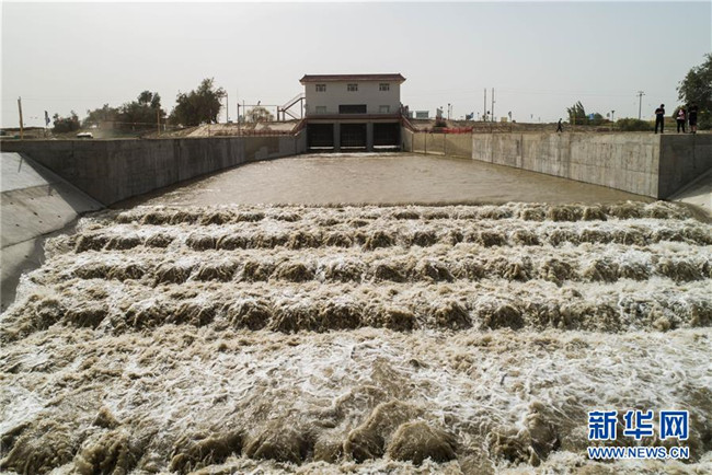 這是2019年實(shí)施的第20次向塔里木河下游生態(tài)輸水,生態(tài)水從大西海子水庫奔騰而下(8月16日攝)。 新華社發(fā)(肖玉磊 攝)