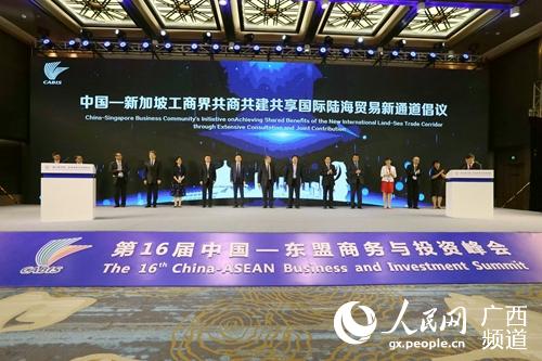本次論壇發(fā)布了中國—新加坡工商界共商共建共享國際陸海貿易新通道倡議,共同見證了中新南寧國際物流園新中智慧園試運營啟動儀式和國際陸海貿易新通道第762班海輪欽州港出發(fā)。