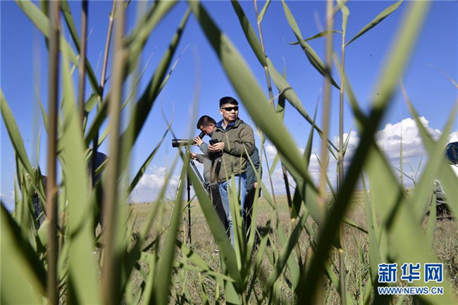 9月24日,青海湖國家級自然保護區(qū)管理局的巡湖觀測人員屈永強(右)、王延明在布哈河河口進行觀測。