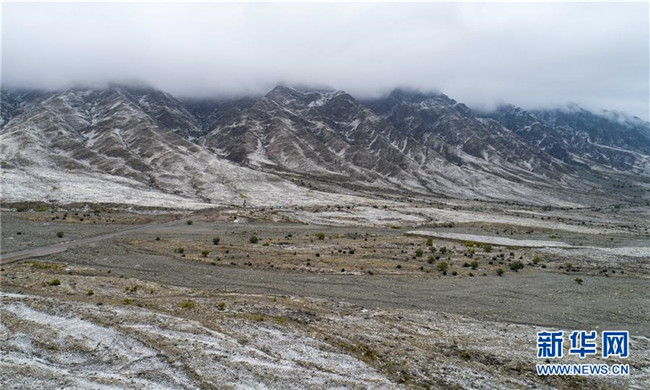 這是10月14日無人機(jī)拍攝的雪后賀蘭山景色。當(dāng)日,寧夏銀川市迎來降雪天氣。寧夏氣象臺發(fā)布暴雪藍(lán)色預(yù)警,提醒市民注意交通安全、做好防寒、防滑和清雪工作。新華社發(fā)(楊植森攝)