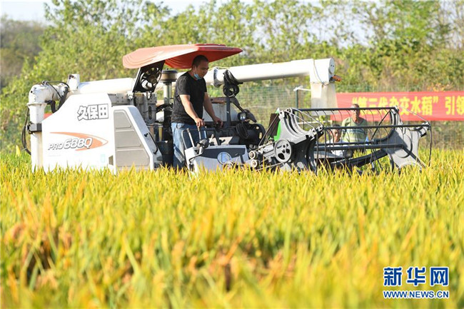 這是第三代雜交水稻新組合試驗(yàn)示范衡南基地測產(chǎn)現(xiàn)場(10月21日攝)。 新華社記者 陳澤國 攝