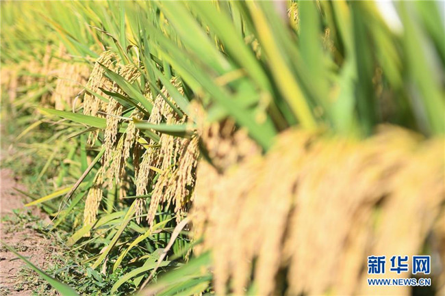 這是第三代雜交水稻新組合試驗(yàn)示范衡南基地測產(chǎn)現(xiàn)場待收割的水稻(10月21日攝)。 新華社記者 陳澤國 攝