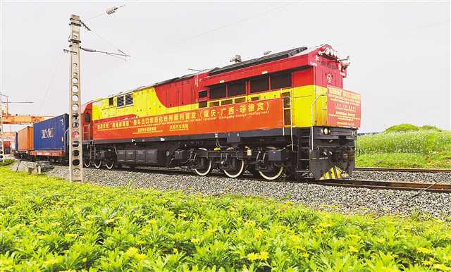 滿載125臺(tái)整車的專列從重慶沙坪壩區(qū)團(tuán)結(jié)村中心站駛出,標(biāo)志著西部陸海新通道整車出口常態(tài)化班列的開(kāi)啟。(本報(bào)資料圖片) 記者 羅斌 攝