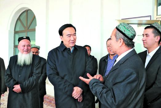 陳全國還來到高昌區(qū)紅星片區(qū)戈壁社區(qū)清真寺,調(diào)研宗教活動(dòng)開展情況。他說,要全面貫徹黨的宗教工作基本方針,依法保障信教群眾正常宗教需求和正常宗教活動(dòng)的開展,促進(jìn)宗教與社會(huì)主義社會(huì)相適應(yīng)。廣大宗教人士要大力弘揚(yáng)愛國愛教優(yōu)良傳統(tǒng),堅(jiān)守正道、正信正行,引導(dǎo)各族信教群眾為實(shí)現(xiàn)社會(huì)穩(wěn)定和長治久安作出積極貢獻(xiàn)。