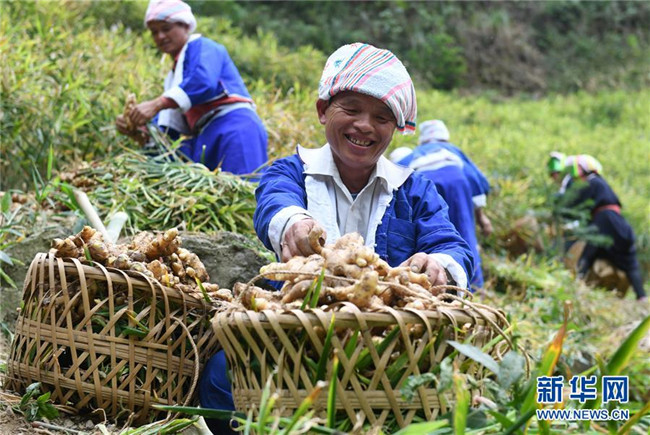 近年來(lái),廣西賀州市平桂區(qū)努力培育扶貧產(chǎn)業(yè),在6個(gè)土瑤聚居的深度貧困村發(fā)展大肉姜種植,帶動(dòng)當(dāng)?shù)厝罕娒撠氈赂弧D壳?,這6個(gè)深度貧困村大肉姜種植面積已達(dá)3166畝,實(shí)現(xiàn)了“戶均兩畝姜”的發(fā)展目標(biāo),大肉姜已成為當(dāng)?shù)厝罕娫鍪盏闹匾a(chǎn)業(yè)。 新華社記者 陸波岸 攝