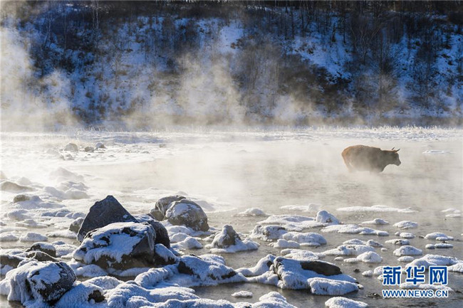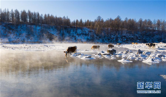 11月20日,牛群在“不凍河”中飲水。新華社記者 彭源 攝