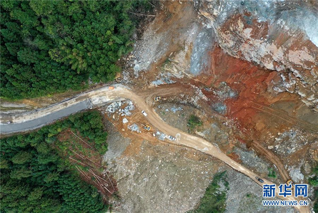 這是位于廣西融水苗族自治縣四榮鄉(xiāng)境內在建的羅融二級公路(11月19日無人機拍攝)。 新華社記者 黃孝邦 攝