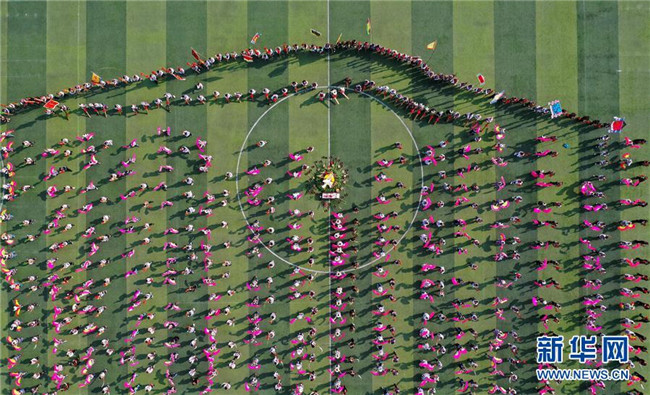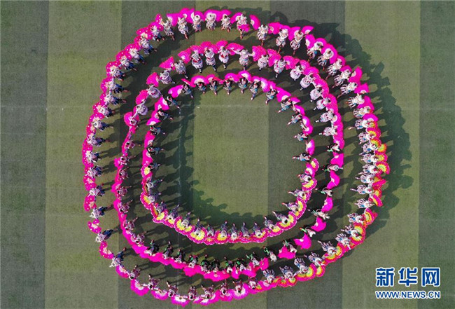 11月23日,當?shù)厝罕娫谔J笙斗馬節(jié)開幕式上表演民族歌舞(無人機拍攝)。