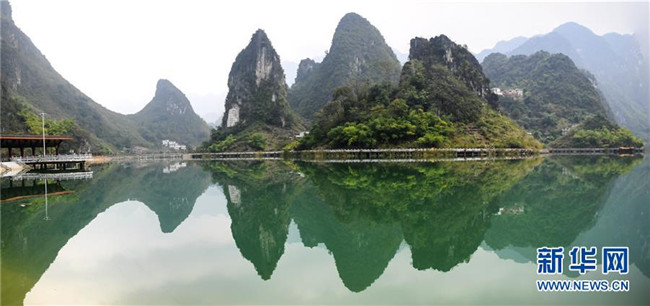 這是游客在觀賞廣西凌云縣浩坤湖景區(qū)的山水風(fēng)景(11月24日攝)。新華社記者張愛(ài)林