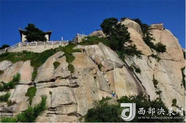 北峰是華山的最低峰,海拔1614.7米,“華山論劍碑”就立于此,北峰頂這里是觀景攬勝的最佳之地。南望有“天外三峰”之稱的東、西、南三峰渾然一體,直插云霄;北望,有公主峰;西邊有“獅子觀寶”、“金龜戲玉蟾”等奇石景觀。