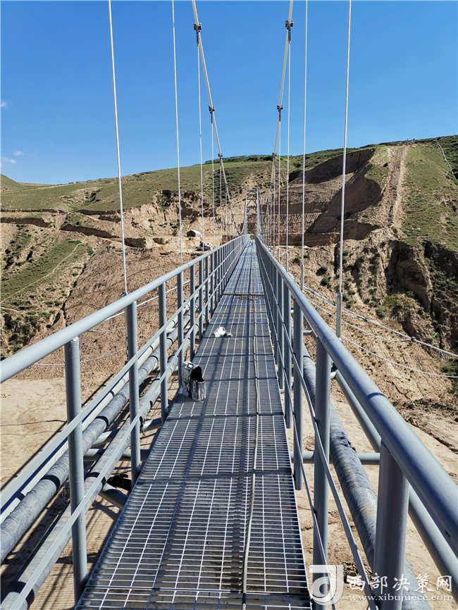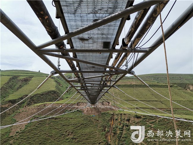 千里黃土高原千溝萬壑,在大山之中穿梭的一條條輸油管線連接而成的“油龍”更需要我們守護。長期以來,學一轉-學一聯(lián)輸油管線穿越深“V”形楊柳溝的位置頻繁滑塌,水土流失嚴重,影響管道的運行安全,造成了重大安全環(huán)保隱患,為此,學一轉-學一聯(lián)輸油管線穿越治理工程建設方案也應運而生。該懸索跨越的主跨度為126米,兩邊輔跨各25米,總跨越長度為176米,跨越全段設檢修通道和風纜,搭載“一油一氣一水”三種管線,屬于大型輸油管道跨越工程。