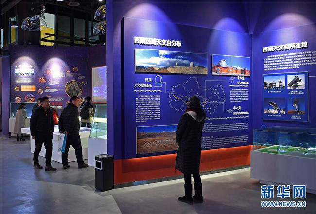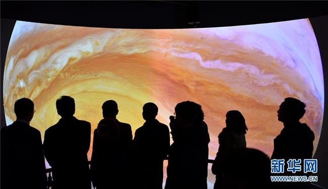 12月14日,觀眾參觀藏域星球天文科普體驗(yàn)館。當(dāng)日,藏域星球天文科普體驗(yàn)館在西藏拉薩開館試運(yùn)營,這是西藏第一家天文科普體驗(yàn)館。據(jù)介紹,此館以感知宇宙、認(rèn)知宇宙、探索宇宙為主題,以參觀者的第一感官體驗(yàn)為設(shè)計(jì)導(dǎo)向,利用互動投影、懸浮投影、物體跟蹤、人體捕捉、體感互動、VR等高科技手段展示藏地的神秘,揭示宇宙的奧秘。新華社記者李鑫攝
