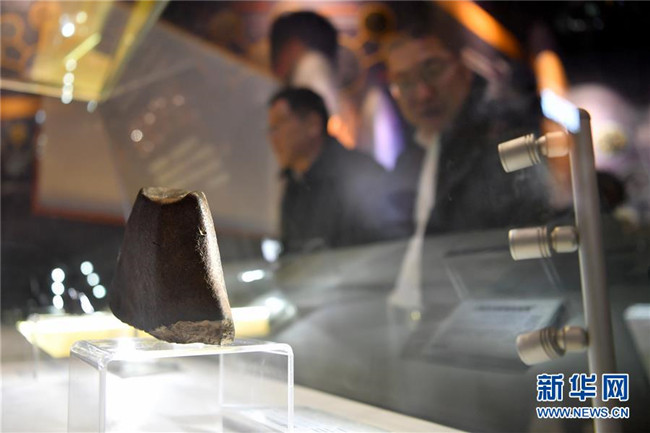 12月14日,參觀者觀看展出的西藏首顆球粒石隕石。當(dāng)日,藏域星球天文科普體驗(yàn)館在西藏拉薩開館試運(yùn)營,這是西藏第一家天文科普體驗(yàn)館。據(jù)介紹,此館以感知宇宙、認(rèn)知宇宙、探索宇宙為主題,以參觀者的第一感官體驗(yàn)為設(shè)計(jì)導(dǎo)向,利用互動投影、懸浮投影、物體跟蹤、人體捕捉、體感互動、VR等高科技手段展示藏地的神秘,揭示宇宙的奧秘。新華社記者李鑫攝