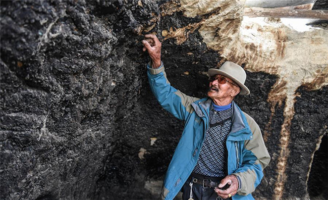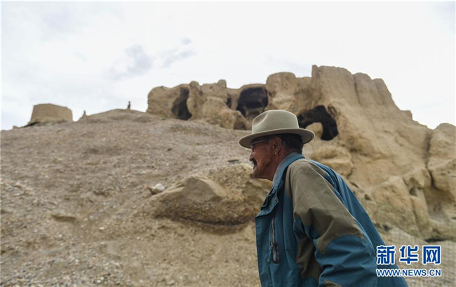 76歲的達瓦次仁走過古格遺址前的洞窟,這里曾是他的家(7月30日攝)。  新華社記者 晉美多吉 攝