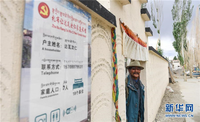 76歲的達瓦次仁在位于西藏阿里地區(qū)札達縣托林鎮(zhèn)札布讓村的家門口(7月30日攝)。 新華社記者 晉美多吉 攝