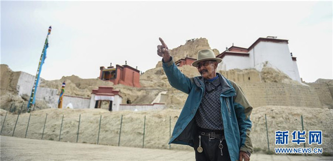 達瓦次仁在古格遺址前(7月30日攝)。 新華社記者 晉美多吉 攝