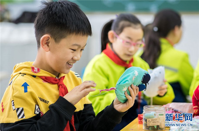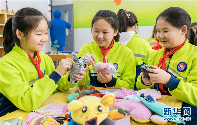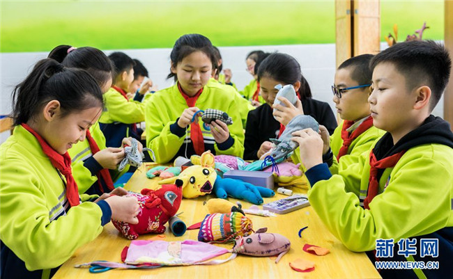 當(dāng)日,內(nèi)蒙古呼和浩特市玉泉區(qū)通順街小學(xué)“巧手社團(tuán)”的學(xué)生在老師的指導(dǎo)下,利用身邊的布頭、絲綿等廢棄物,制作生肖鼠布藝作品,表達(dá)對(duì)新年的美好祝愿。近年來(lái),玉泉區(qū)教育部門(mén)大力推動(dòng)“傳統(tǒng)文化進(jìn)校園”活動(dòng),在當(dāng)?shù)貙W(xué)校里開(kāi)設(shè)剪紙、面塑、戲曲等民間藝術(shù)課程,讓學(xué)生感受傳統(tǒng)文化的魅力。 新華網(wǎng) 發(fā)(丁根厚 攝)