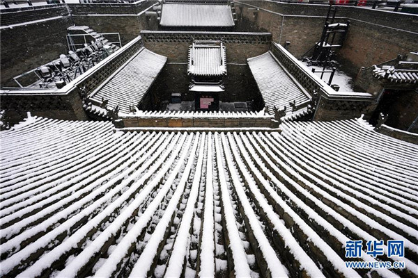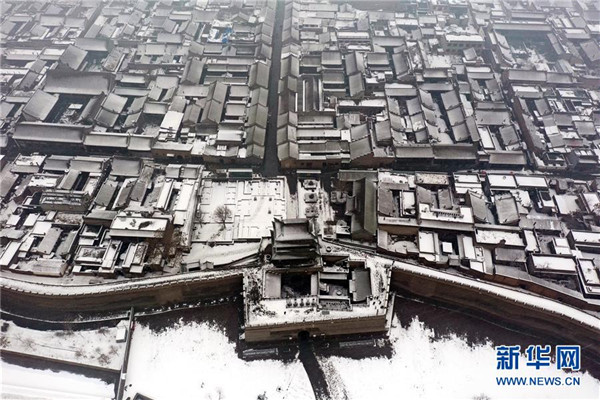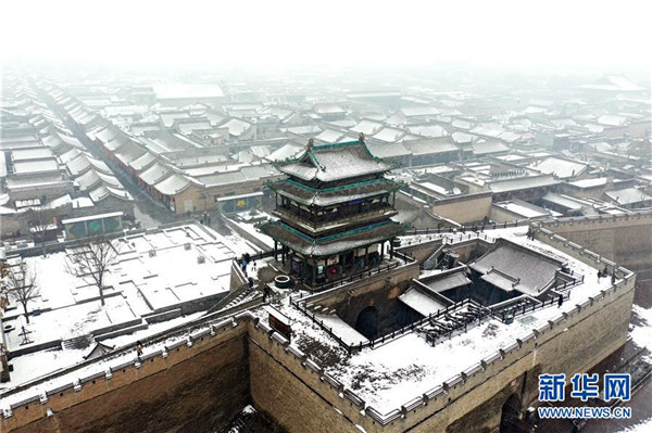 當日,山西省平遙縣迎來降雪,雪中的平遙古城銀裝素裹,美景如畫。平遙古城是目前中國保存最完整的古代縣級城池之一,1997年被列入世界文化遺產(chǎn)名錄。新華社記者詹彥攝