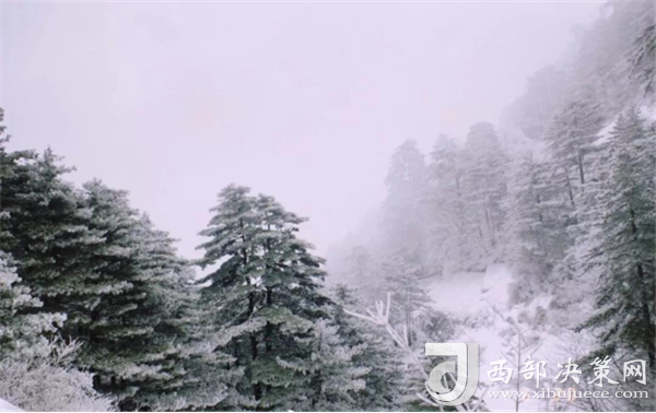 雪靜靜靜的飄落,天女散花般地把雪花撒在松樹的樹葉上。站在峰巔,茫茫蒼蒼滿眼是圣潔的白雪,只星星點點露出松葉的一枝綠意。山是白的,天是白的,樹是白的,人也溶入了這銀白而圣潔的世界。
