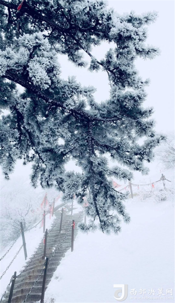 2020年第一場雪,紛紛揚揚灑落華山之巔。圣潔的雪花把華山妝扮得分外妖嬈嫵媚,平日陡峭的巖石,象穿著潔白的羽衣,宛若天仙般亭亭玉立于峰頭路旁,似向游人拂疑,微笑致意,最讓為之從心里震顏起敬的是,華山雪中松樹的雄姿與風(fēng)情。