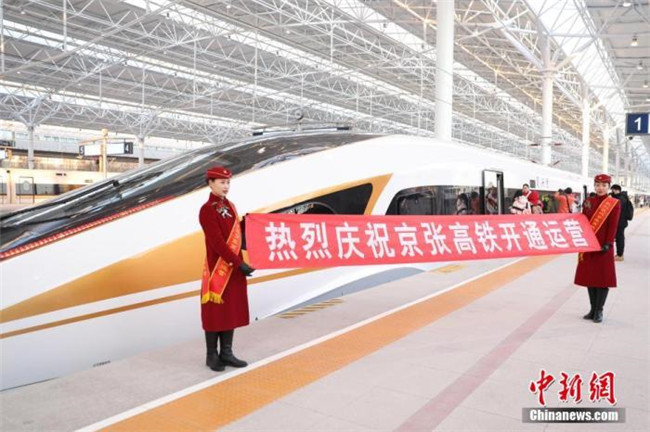 資料圖:2019年12月30日,北京至張家口高速鐵路(簡稱京張高鐵)開通運(yùn)營。中新社記者 蔣啟明 攝