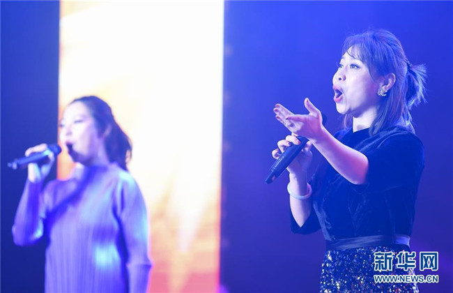1月12日,中央歌劇院文藝小分隊(duì)志愿者、女高音歌唱家夏羽(右)和蔡楠在慰問(wèn)演出上演唱《我愛(ài)你中國(guó)》。新華社記者 王全超 攝