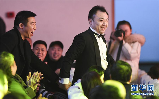 1月12日,中央歌劇院文藝小分隊(duì)志愿者、男中音歌唱家耿哲在慰問(wèn)演出上與觀眾互動(dòng)。新華社記者 王全超 攝