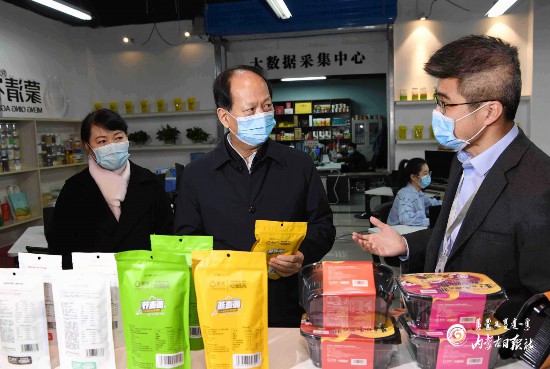 中小微企業(yè)和餐飲業(yè)受疫情影響較大,石泰峰高度關(guān)注。在金橋電子商務(wù)產(chǎn)業(yè)園,他通過觀看大數(shù)據(jù)監(jiān)測平臺、走訪商戶等方式,深入了解入駐企業(yè)經(jīng)營情況。在蒙清農(nóng)業(yè)電子商務(wù)運(yùn)營中心,企業(yè)負(fù)責(zé)人展示了他們研發(fā)的適合“宅”在家食用的“蕎面自嗨鍋”,該產(chǎn)品在疫情期間投入市場后十分暢銷。石泰峰指出,疫情給很多行業(yè)帶來了沖擊和影響,但危中也有機(jī)。要主動應(yīng)變求變,加大產(chǎn)品創(chuàng)新力度,挖掘新的消費(fèi)熱點,培育新的消費(fèi)模式,堅持線上線下雙輪發(fā)力,加快釋放新興消費(fèi)潛力。在西貝莜面村,石泰峰走進(jìn)餐廳,詳細(xì)了解防疫防控和堂食營業(yè)、訂單外賣等情況。餐飲企業(yè)對顧客用餐實行掃碼、測溫、登記,顧客就餐保持規(guī)定距離、實行分餐,石泰峰要求把這些嚴(yán)格的防控措施切實落實到位。他強(qiáng)調(diào),有關(guān)部門要加強(qiáng)服務(wù)指導(dǎo),推動符合條件的餐飲企業(yè)和店鋪積極有序復(fù)工,確保各個環(huán)節(jié)都安全可控。他還隨機(jī)走進(jìn)多家臨街餐館,檢查防疫措施,詢問員工返崗和營業(yè)情況。