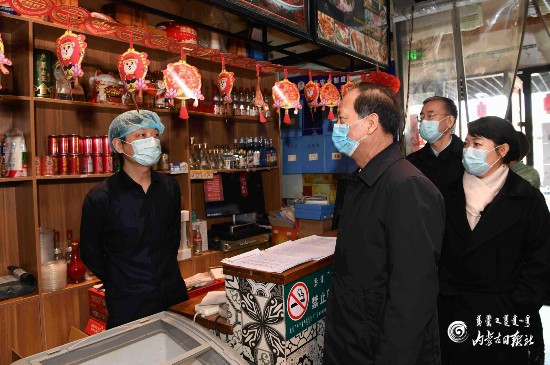 3月12日,自治區(qū)黨委書記、人大常委會主任石泰峰隨機(jī)走進(jìn)一家臨街餐館,檢查防疫措施,詢問員工返崗和營業(yè)情況。 內(nèi)蒙古日報社融媒體記者 袁永紅 攝