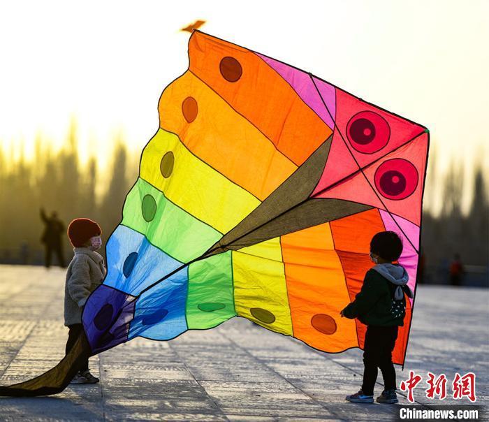 資料圖:3月22日,敦煌市民在敦煌鳴沙山下黨河大橋附近的空地上放風(fēng)箏?!⊥醣筱y 攝