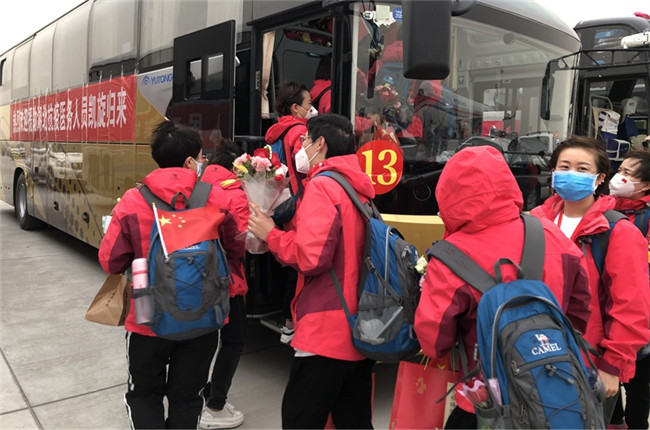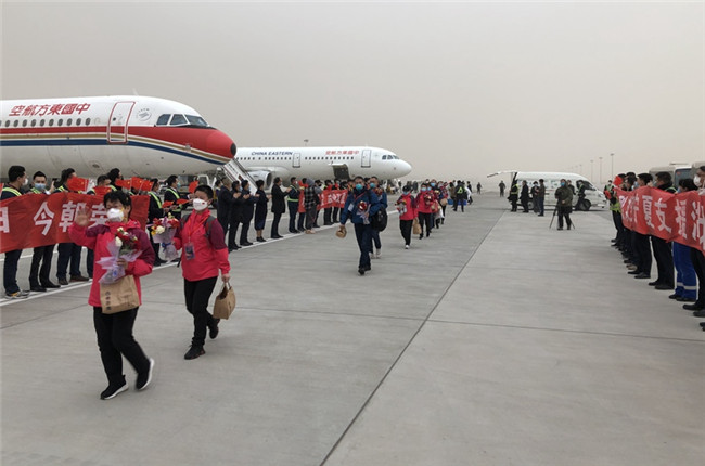 今天下午,載有寧夏第五批、第六批援湖北醫(yī)療隊(duì)隊(duì)員的包機(jī)降落在銀川河?xùn)|國際機(jī)場。今日撤離隊(duì)伍共有323人返回,其中320人乘機(jī)返回,3人駕駛緊急救援車返回?;貙幒螅麽t(yī)療隊(duì)醫(yī)務(wù)人員將分別由五市接回,在指定酒店接受14天醫(yī)學(xué)隔離。據(jù)了解,疫情以來,寧夏陸續(xù)派出六批援湖北醫(yī)療隊(duì)隊(duì)員共計(jì)785人,目前仍有8名疾控中心流調(diào)人員繼續(xù)在武漢、潛江支援。
