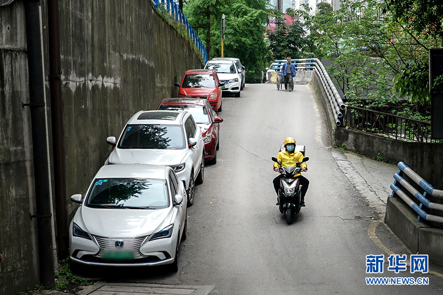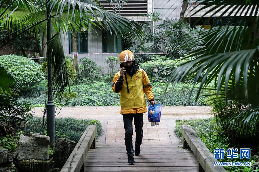 到達(dá)送餐的小區(qū)后,王淞迅速跟對(duì)方取得聯(lián)系,上門進(jìn)行配送。據(jù)沙坪壩區(qū)委政法委相關(guān)負(fù)責(zé)人介紹,通過快遞和外賣配送業(yè)務(wù)來發(fā)送宣傳制品,是為了讓宣傳教育活動(dòng)由人員聚集到分散入戶,變集中宣傳為流動(dòng)宣傳,同時(shí)不降低疫情期間群眾參與度。新華網(wǎng) 韓夢(mèng)霖 攝