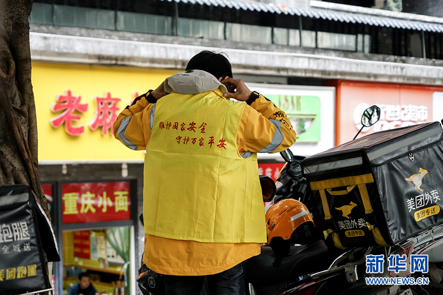 來到取餐的商家,王淞整理了一下印有國(guó)家安全宣傳標(biāo)語的背心。當(dāng)天,重慶市沙坪壩區(qū)有200多名外賣騎手身著這款背心穿梭在大街小巷,化身國(guó)家安全宣傳使者,把國(guó)家安全宣傳品送到居民群眾手里,讓維護(hù)國(guó)家安全的宣傳標(biāo)語成為一道流動(dòng)而醒目的風(fēng)景線。新華網(wǎng) 韓夢(mèng)霖 攝
