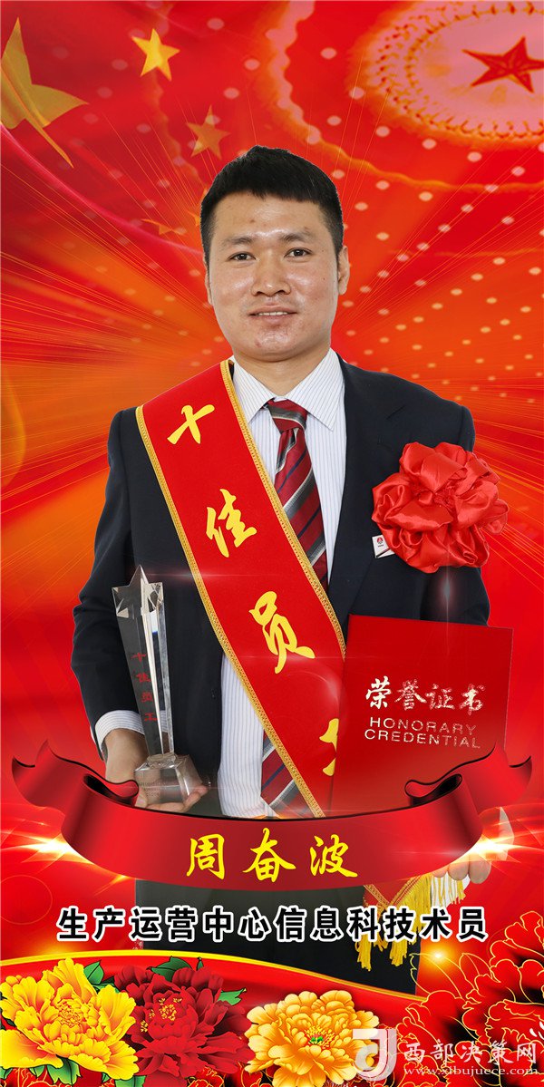 而當(dāng)下,眼前站著的這位身強(qiáng)力壯的小伙,黝黑的膚色,手里緊緊的攥著他夢寐以求、至高無上的獎杯和證書,可以看得出,那份榮譽(yù)在他心里的分量。我想,對他而言那不僅僅是一份榮譽(yù),更是一份責(zé)任,是一個企業(yè)對人才與年輕人的重視和培養(yǎng),更讓我看到的是企業(yè)里新增的這份擔(dān)當(dāng)力量。正如周奮波講的那樣“這次‘十佳’對我來說有驚也有喜,驚的是,我要鼓足沖勁去干事業(yè),不能辜負(fù)組織對我的這份嘉獎;喜的是,這份榮譽(yù)不僅是對我工作的肯定,也為我今后干工作帶來更多的自信”。
