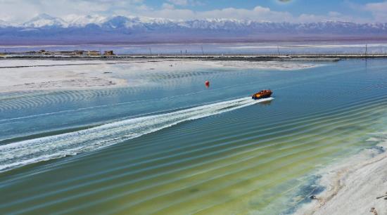 遠(yuǎn)處人工鹵水運(yùn)河上轟鳴聲陣陣,鹽湖游輪破風(fēng)而來(lái),掀起一波波潔白的浪花,在陽(yáng)光的照射下金光閃爍。乘坐游船航行在鹵水人工運(yùn)河上可以直觀體驗(yàn)工業(yè)遺風(fēng),欣賞全機(jī)械化的船采船運(yùn),感受茶卡鹽湖鹽業(yè)開(kāi)采的滄桑巨變,是“原生態(tài)的鹽湖工業(yè)活景觀”。